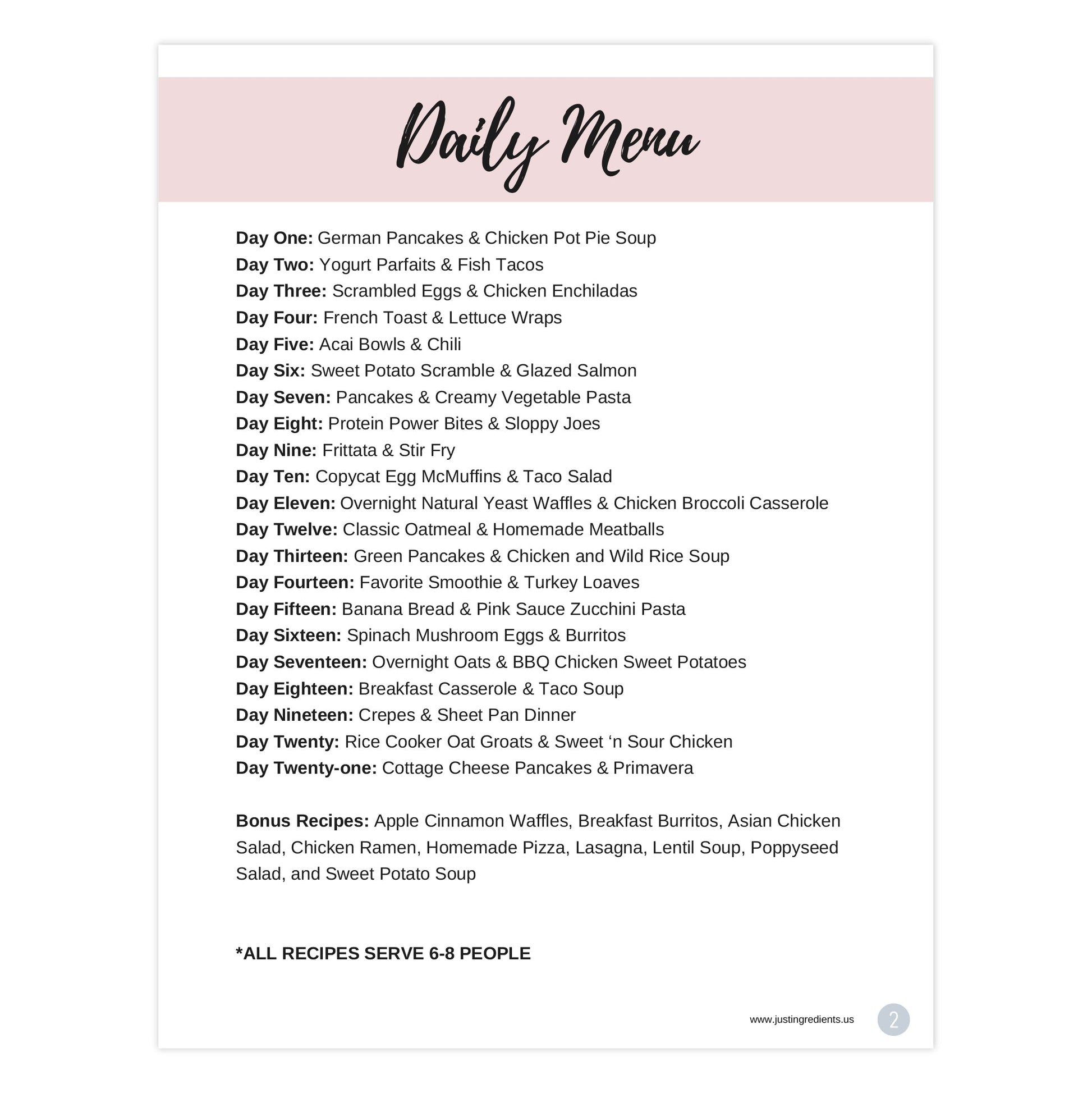 Just Ingredients Cookbook: 21 Days of Meals - Digital Download